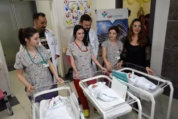 Gebelik sürecinde anneye oluşabilecek sıhhat problemleri açısından karşılıklı diyalog halinde anneye inanç sağlandığını söyleyen Yeni Doğan Ağır Bakım Sorumlusu Çocuk Sıhhati ve Hastalıkları Uzmanı Dr. Cem Çiçek, şunları söyledi: “Anne de tabip olması nedeniyle oluşabilecek problemleri daha evvelden iddia etmesine karşın olayı çok düzgün karşıladı. Bu bizim için çok değerli bir kriterdir. Annenin olumlu gücü çocuğa yansıyor. Bebeklerimiz üçüz olmalarına karşın, öbür üçüz bebeklere nazaran daha sağlıklı doğdular, ben de bunu annenin müspet gücüne bağlıyorum. İkisi kız, biri oğlan olan bebeklerimiz sonda prematüre bebeklerdi, biz de takibine başladık ve beşinci günde bebekler emmek istedi. Beklentimiz 14 gün içerisinde çıkmaktı ancak bebekler 5’inci günde çıkmaya başladı. Şu anda bebeklerimiz sağlıklı. Bizim için 50 yaşında bir anneden sağlıklı üçüz bebeklerin dünyaya gelmesi bir mucizedir.”