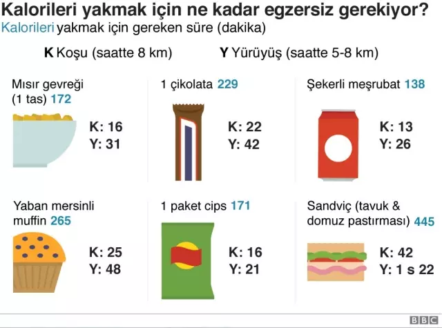 Daley “İnsanların besinlerdeki kalori sayısını daima hafife aldıklarını biliyoruz. Örneğin bir çikolatalı muffin yediniz ve 500 kalori barındırıyor. Yakmak için 50 dakika dolayında koşmanız gerekiyor.” dedi.