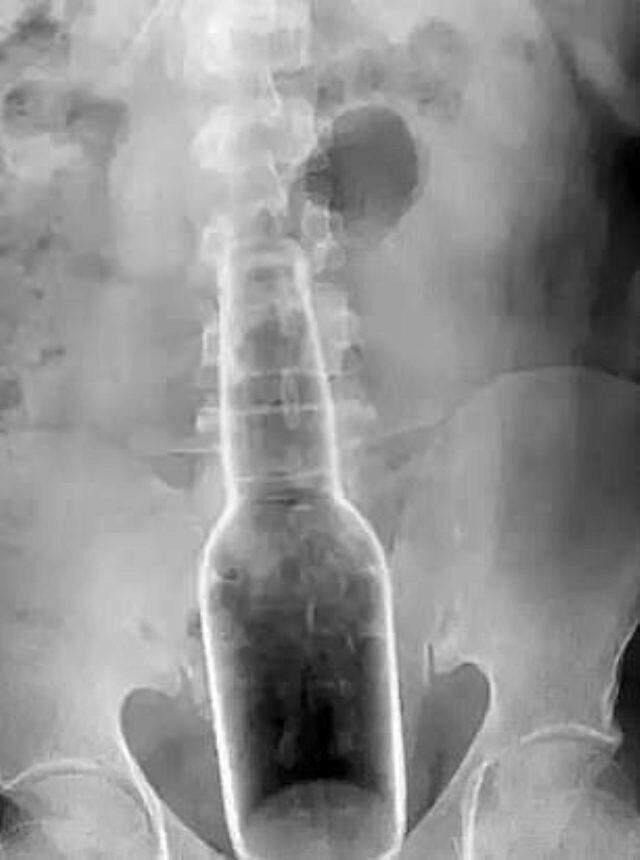 Röntgen tetkiklerinin akabinde, cismin hastanın anüsünden kalın bağırsağına kadar uzanan, 18 santimetre uzunluğunda ve 5 santimetre genişliğinde cam bir şişe olduğunu tespit ettik. Şişeyi çıkarmak hedefiyle hemen operasyon kararı aldık. Operasyon başarılı geçti ve hastamızı tıpkı gün taburcu ettik” sözlerini kullandı.