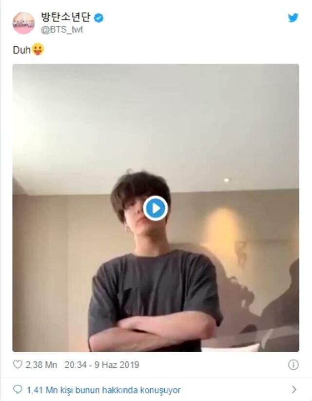 Paylaşım, 957 binden fazla retweet aldı. Güney Koreli K-Pop kümesi BTS’in en genç üyesi Jeon Jungkook’un 9 Haziran’da paylaştığı ve müzik eşliğinde dans ettiği 19 saniyelik bir görüntüyü eklediği tweet ise ikinci sırada yer aldı.